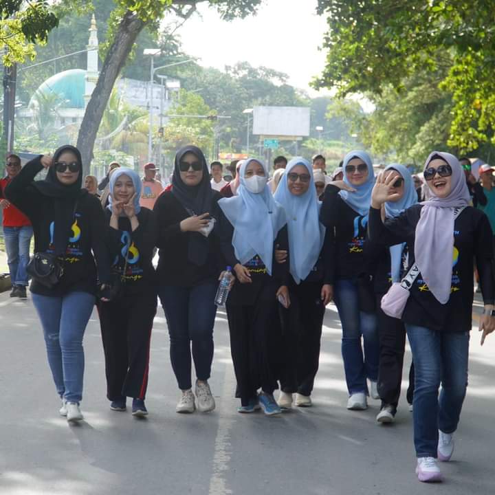 Antusias warga kota Kendari begitu antusias mengikuti jalan sehat baik dari anak sampai orang tua.