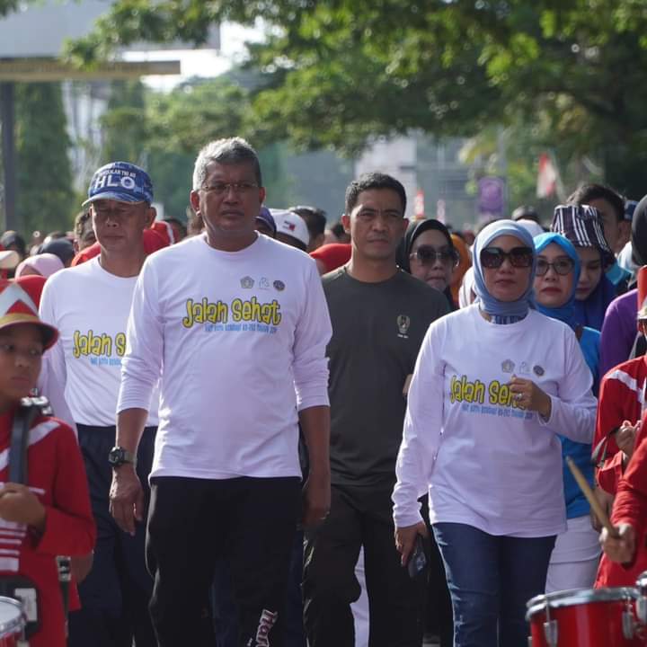 Pj. Wali Kota Kendari Muhammad Yusup didampingi Forkopimda dan Sekda Kota Kendari secara resmi melepas peserta jalan sehat.