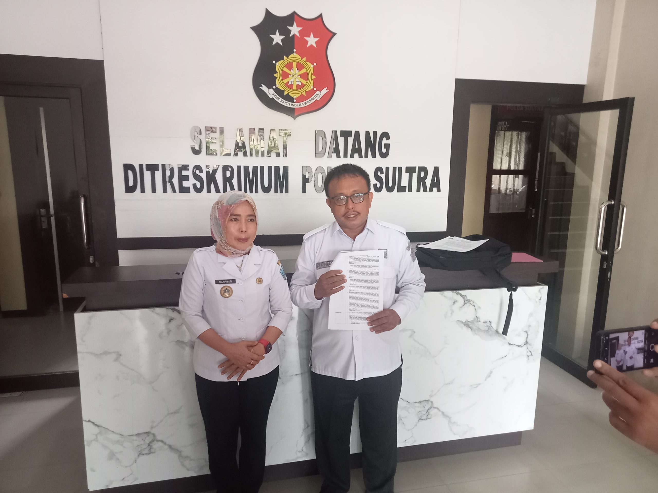 Kepala Dinas Kominfo Kota Kendari, Nismawati bersama Kepala Bagian Hukum Sekretariat Kota Kendari, Kurniawan Ilyas, yang ditunjuk mewakili Pj Walikota Kendari mendatangi POLDA Sultra di Reskrimsus untuk melaporkan hal tersebut.