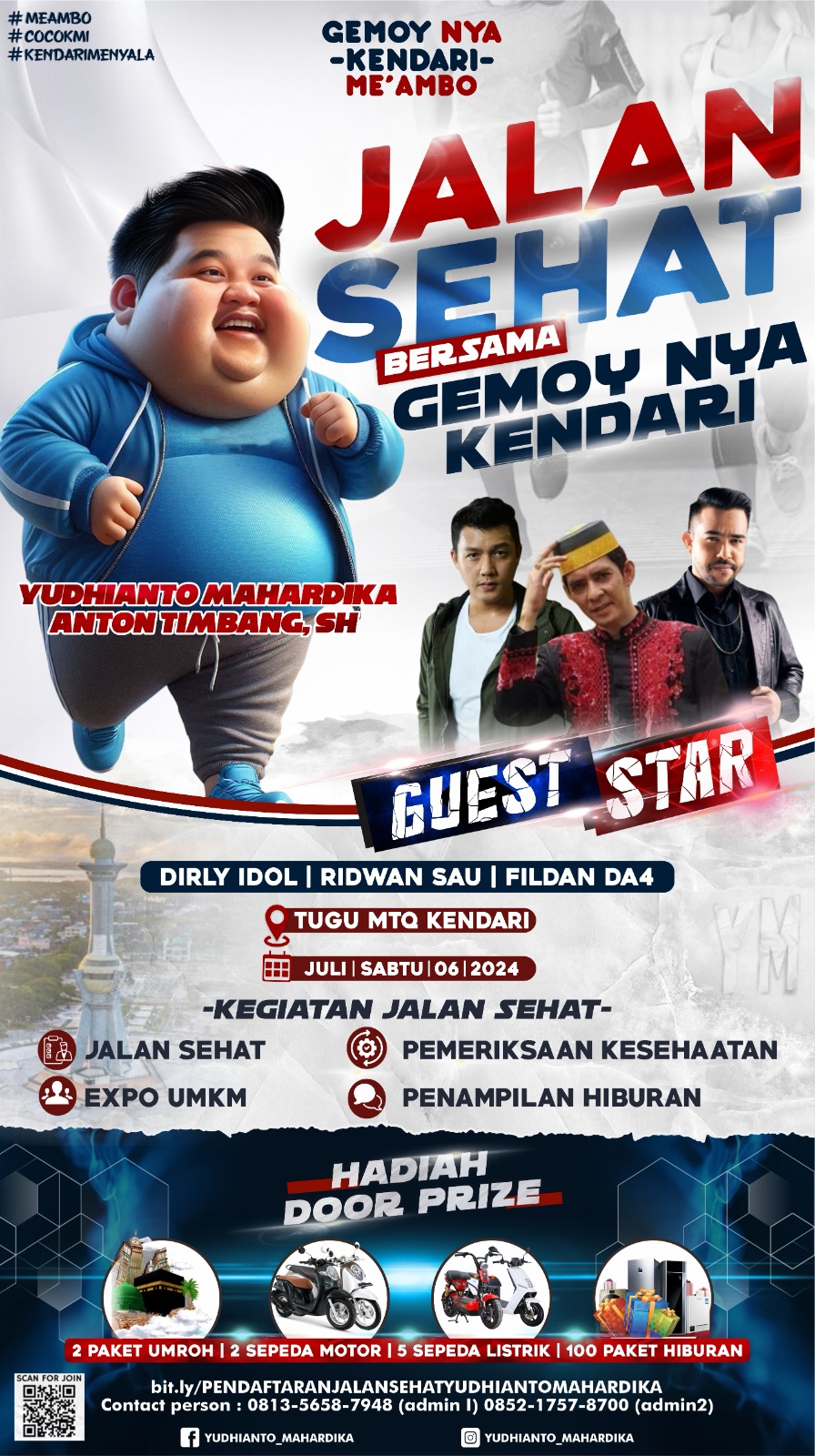 Sekedar informasi, bagi masyarakat yang ingin mengikuti jalan sehat bersama Gemoy Nya Kendari bisa langsung mendaftar melalui link bit.ly/PENDAFTARANJALANSEHATYUDHIANTOMAHARDIKA.