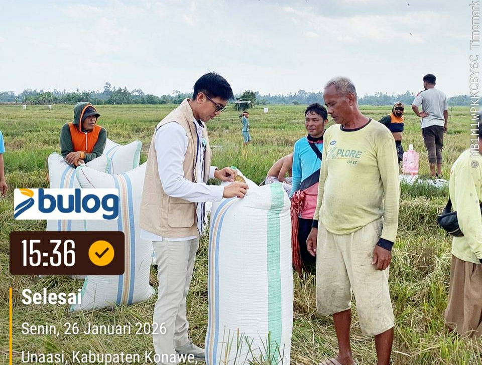 KONAWE, FigurSultra.com – Bulog Konawe telah menyerap 2.700 ton gabah dari petani sejak awal Januari 2026. Kepala Bulog Konawe, Muh Abdan Djarmin, meng koordinasi atakan bahwa penyerapan gabah ini merupakan bagian dari upaya pemerintah untuk meningkatkan produksi pangan dan stabilitas harga.
