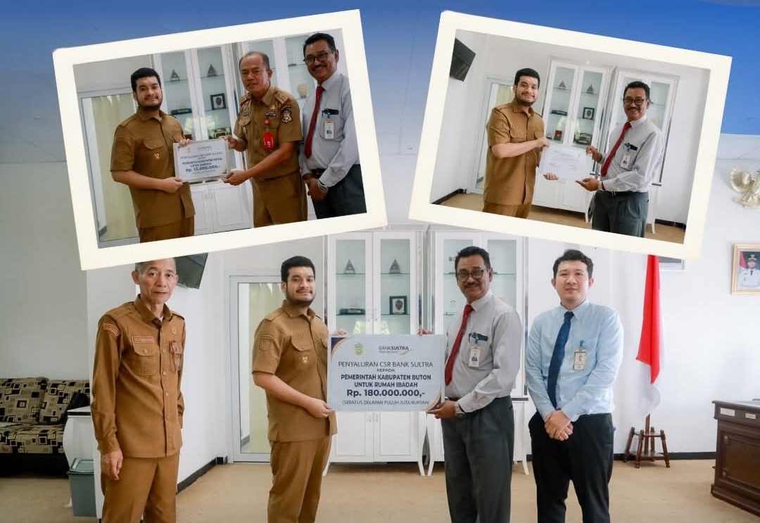 Figursultra.com, Pasarwajo – PT Bank Pembangunan Daerah Sulawesi Tenggara (Bank Sultra) kembali menunjukkan komitmennya dalam mendukung pembangunan daerah dan kesejahteraan masyarakat. Melalui program Corporate Social Responsibility (CSR), Bank Sultra menyerahkan bantuan total senilai Rp193.000.000 yang dipusatkan untuk perbaikan fasilitas rumah ibadah dan peningkatan sanitasi di wilayah Kabupaten Buton.